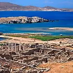Villan med 9 badrum ligger också 2 km från Mykonos arkeologiska museum och 5 km från Paranga strand. Gästerna kan också ta sig till Mykonos nya hamn, som ligger ungefär 10 minuter bort med bil.